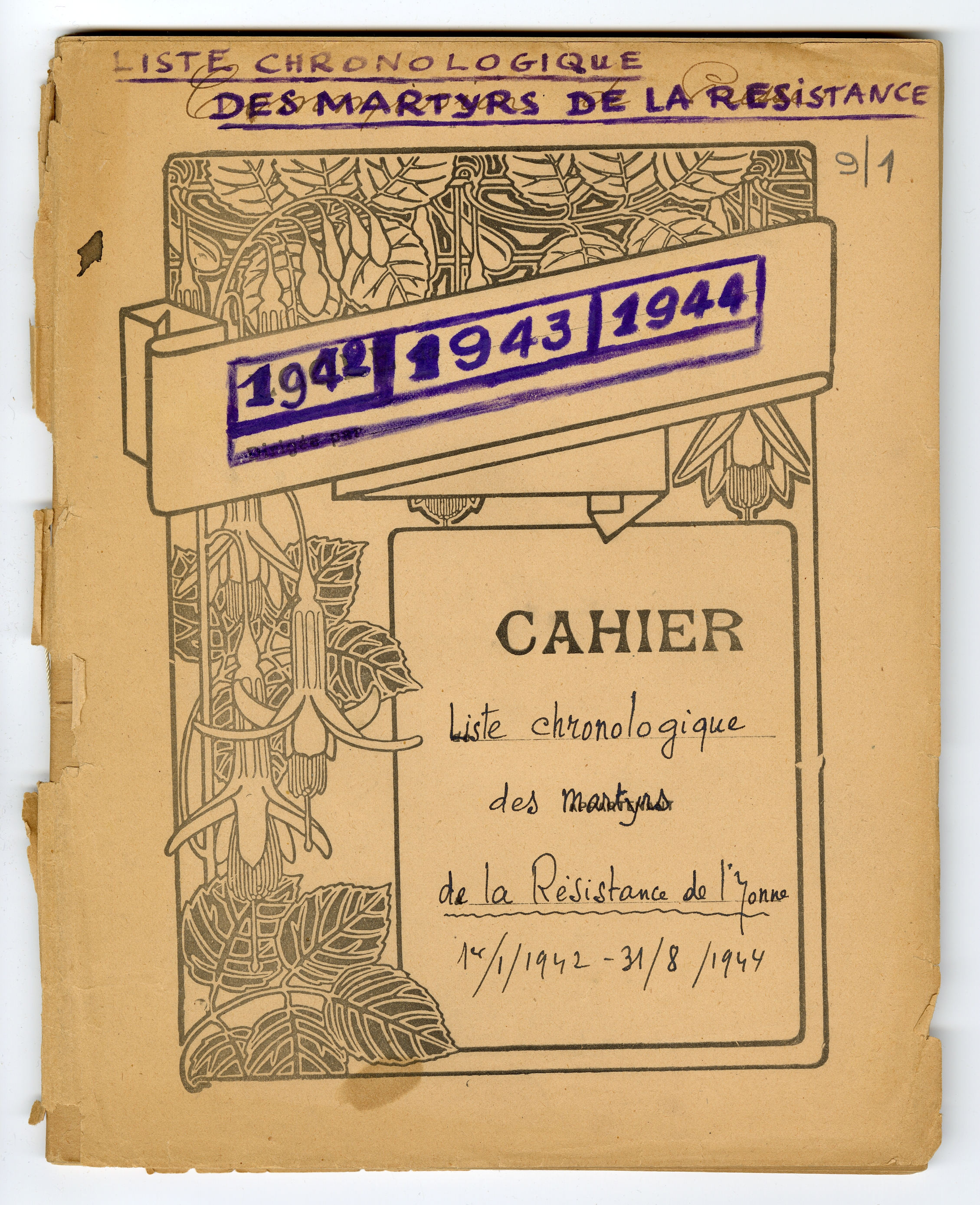 Carnet des martyrs de la Résistance (arch. dép. Yonne, 73 J 34)