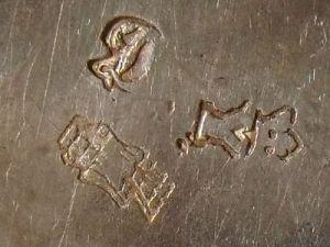 La présence des poinçons, sous le fond, permet de dater et d’attribuer avec précision cette pièce. On y reconnaît celui de Marie-Thérèse Larché, veuve Jean-Paul Légaré (une tour, lettre V au-dessus, lettre L entre deux grains dessous). Jean-Paul Légaré était fils et petit-fils d’orfèvres qui exercèrent à Thiers et à Chaumont-en-Bassigny. Après un apprentissage chez son père, il travaille comme compagnon chez Guillaume Baudot, maître orfèvre à Avallon où il épouse Marie-Thérèse Larché en 1736. Il devient maître orfèvre à Avallon en 1737, où il décède, paroisse Saint-Julien, le 3 mars 1781. C’est alors que Marie-Thérèse Larché, avec son fils Gaspard, reprend la boutique de son défunt mari et obtient un poinçon de la Monnaie de Dijon. Son fils Gaspard travaille avec elle. Le 11 mai 1787, elle décède à Avallon et son enterrement a lieu le 12 à Saint-Julien.