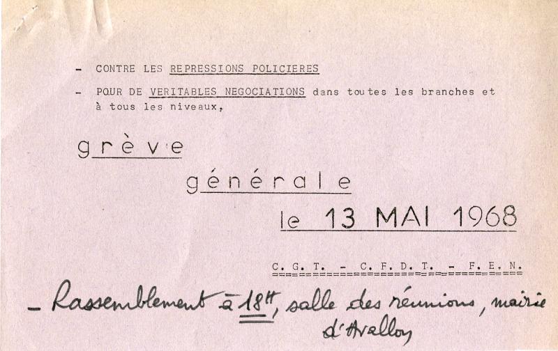 Tract de mai 1968. Arch. dép. Yonne, 1248 W 310.